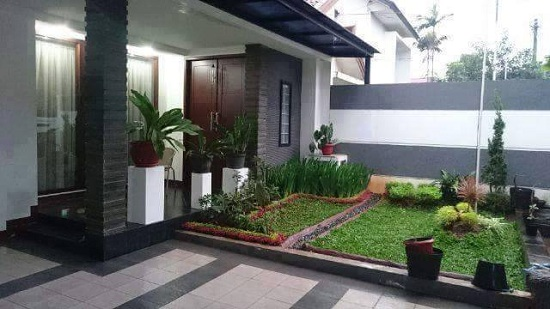 Dengan perpaduaan rumput yang hijau halaman rumah terlihat indah.
